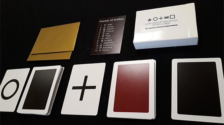 Housed inside the "International Paranormal Research Association" box are two complete ESP or Zener decks. One red backed deck, and one original black backed deck. The new cards have been printed to the highest standard by the US Playing Card Company, so they look and feel great. Inside your deck you'll also find a selection of extra cards and fakes providing you with more creative possibilities than any other ESP deck on the market.