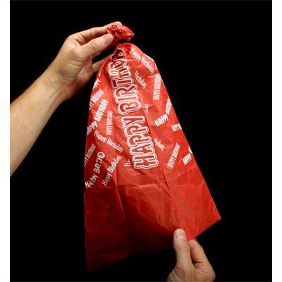 Effect: The magician displays two sheets of tissue paper and tears them into two different pieces giving two sheets to an audience volunteer who is instructed to tear their pieces just like the magician and magician says "We will restore our pieces together". The volunteer is left with several torn pieces but the magician takes their pieces and ads them to his & restores the paper to a Happy Birthday Hat which is placed on the volunteer's head. These hat tears are large size which will fit an adult. So guarantee that these hats will have extra room to fit over a child's head, you may twist the back of the hat once on the child's head for a tighter fit.