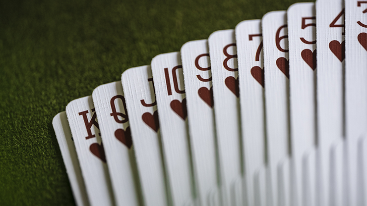 Printed by Cartamundi on slimLine stock with a True Linen B9 finish they are perfect for professional card handlers. Packaged inside a letterpress-printed tuck box featuring metallic-inked accents these cards appear just as prestigious as Erdnase's book.