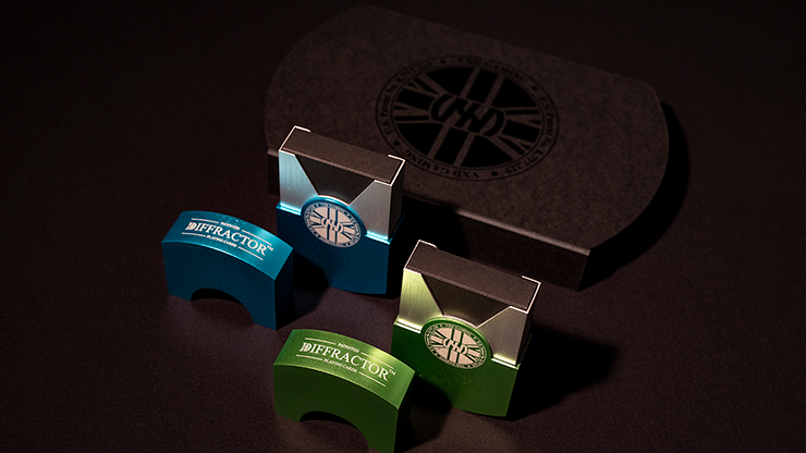 The London Diffractor Twin Metal Set is the pinnacle of the release. One light blue ('Ice Blue') and one green ('Emerald') metal deck sit side by side in this luxurious and modern display box. The two decks are number-matched. These sets are limited to 499 units and will never be reproduced.