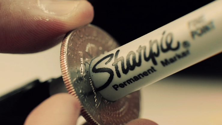 An easy-to-do miracle that allows you to push a Sharpie pen straight through the middle of a borrowed signed coin. A never-before-seen method means that you can now show both sides of the coin at all times before, during and after the effect.