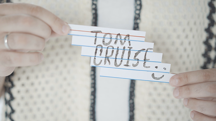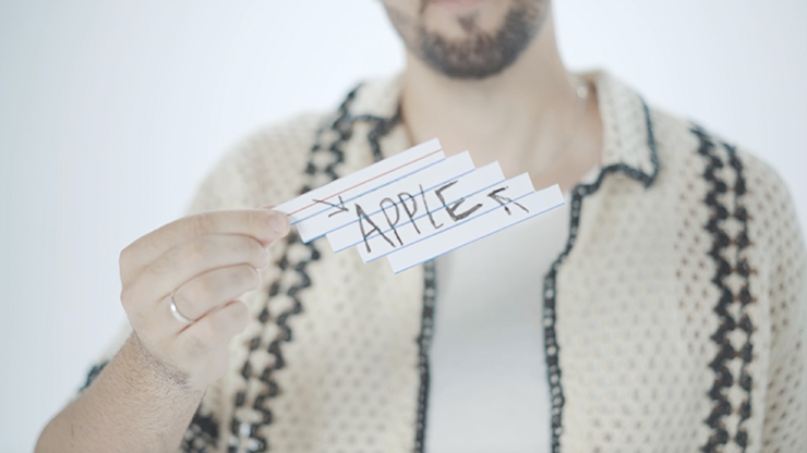 An unreadable prediction written on an index card impossibly morphs into the word the spectator was thinking, leaving behind an impossible object - a melted index card - that the spectator can keep as a souvenir.