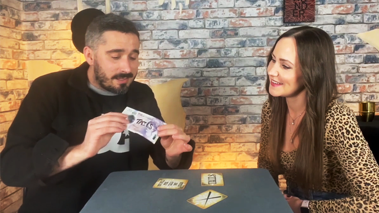 Your participant flips an imaginary coin in the air and they take a peek to see if it landed on heads or tails.. they are the only person to know what is has landed on!
