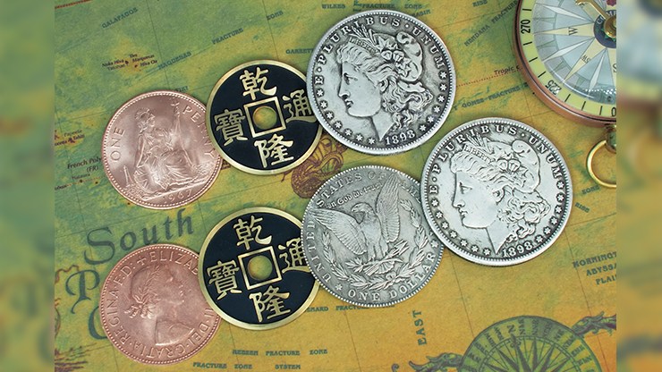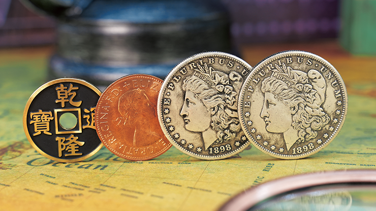 You hold four different coins in your hand, they are two silver Morgan coins, one copper coin, and one ancient coin. You close your palm and then open it again, 'There's only a silver Morgan coin left in your hand.'. The other three coins just disappeared like real magic!