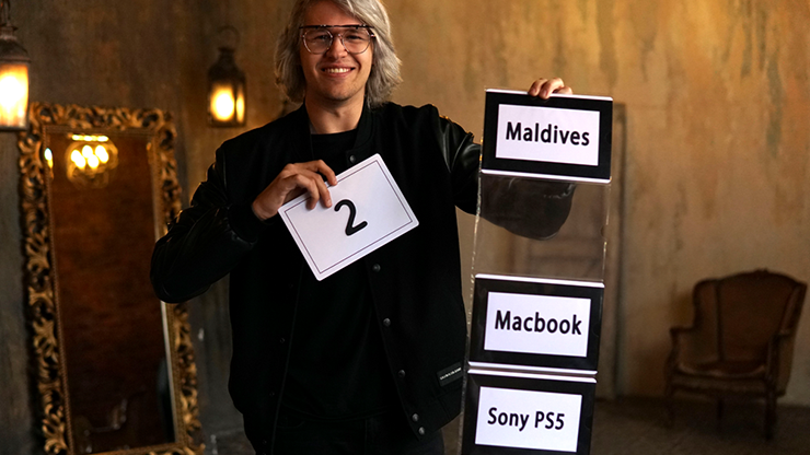 You ask a spectator to choose their future for the next year; you are showing 5 boards with five numbers on it. The spectator freely chooses any number from one to five. You show to the audiences that spectator's choice was the word "luck", but under all the other numbers there was... COVID-19