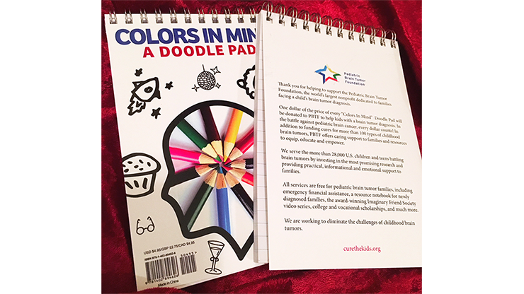 The story of this pad's origin is written on the back - a fund raising doodle pad for the Pediatric Brain Tumor Foundation.