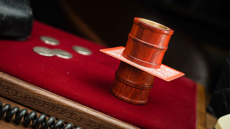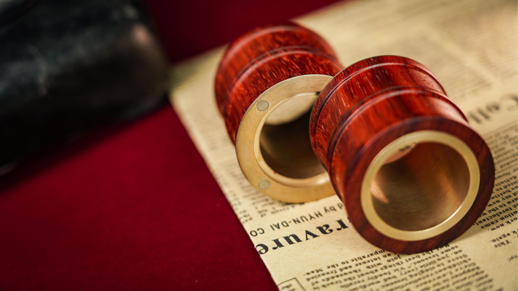The Coin Penetration Tube is a classic coin magic prop. It consists of two metal or wooden cylinders that can be snapped together and split apart, with a playing card or metal plate in between them. The magic happens when a coin is placed in one end of the tube and passes through to the other end. The beauty of this prop is that it does not require any complicated sleights or techniques.