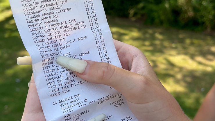 Hand your spectator FIVE supermarket receipts. Let them check they are ALL completely different and ask them to focus on ONE item from one of the receipts.